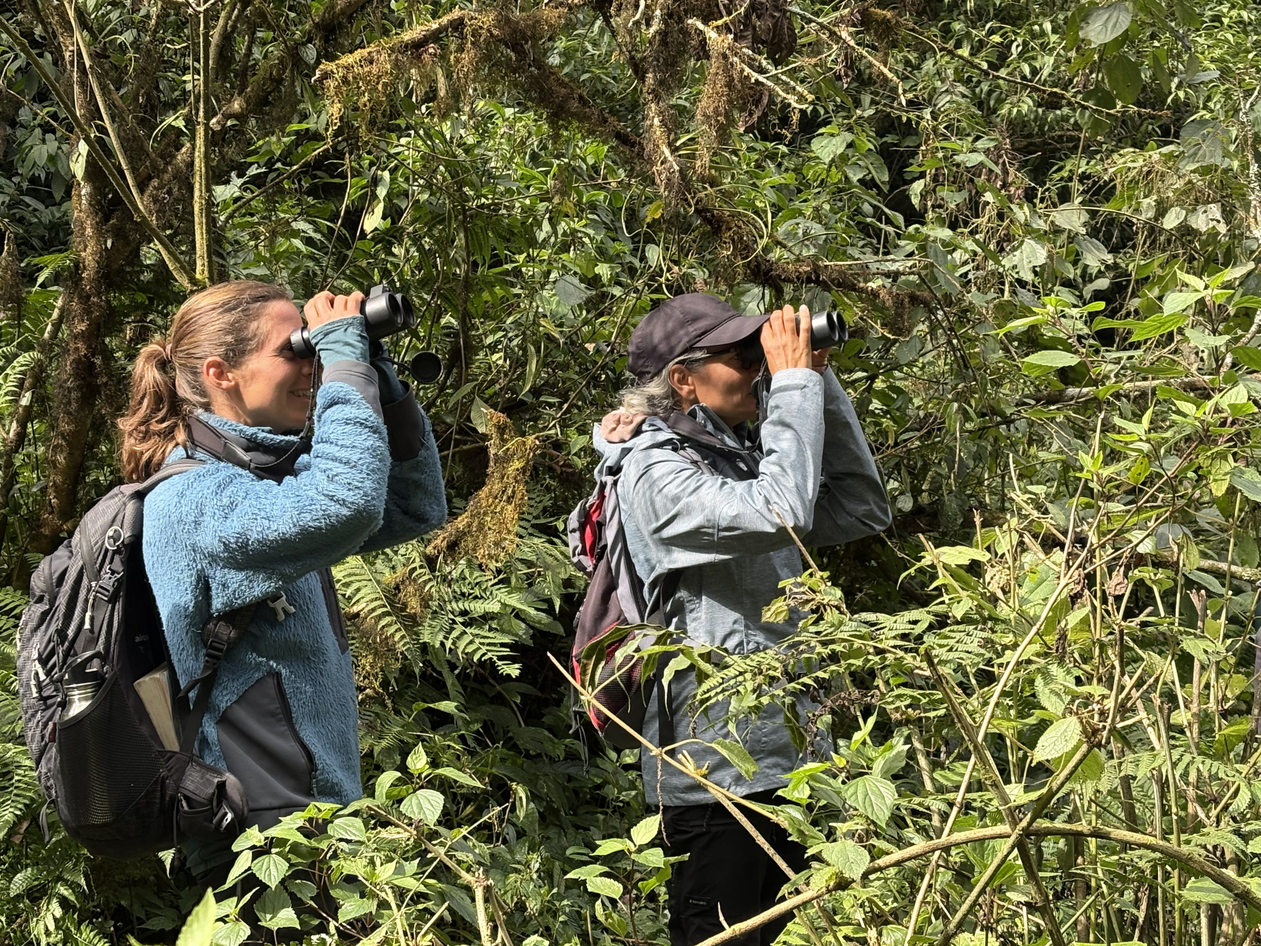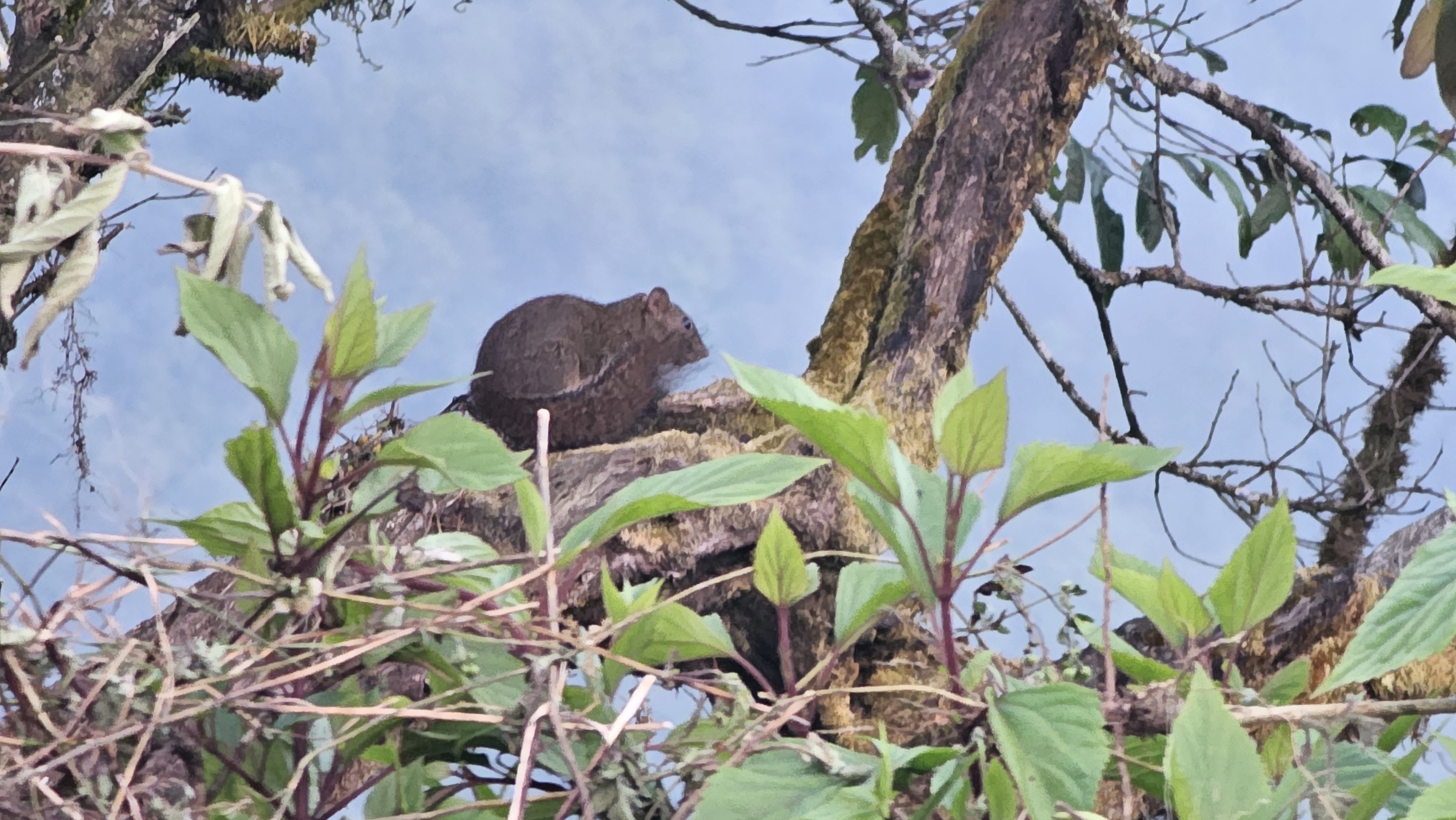 Comme la dernière randonnée est une assez longue descente, Annie et Brigitte préfèrent prendre leur temps ce matin à Gadi, et descendre avec la jeep qui récupérera les gros sacs d’équipement. Elles en profitent pour faire une interview mammifères avec un des membres de l’équipe du cottage qui parle anglais. Super initiative !