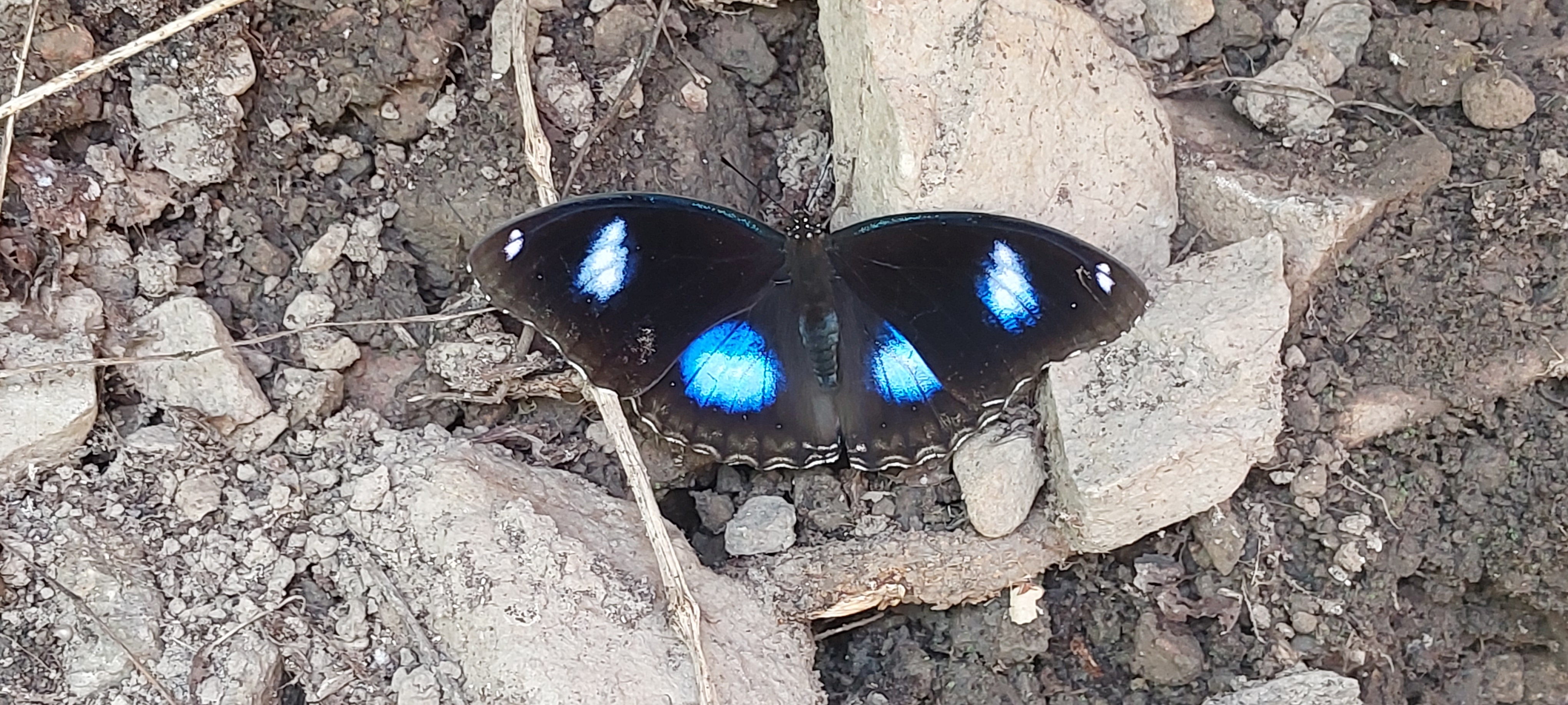 La randonnée du jour nous mène d’abord à Kapé, où nous sommes déjà passés le deuxième jour, puis nous commençons une longue descente sur une crête avec une vue phénoménale sur les pentes sud des Chepang Hills. C’est un endroit exceptionnel pour l’observation des rapaces, et c’est encore le cas aujourd’hui, avec l’observation de très nombreux Aigles des steppes et de nombreux Vautours de l’Himalaya entre autres. Nous descendons par un chemin agréable entre forêts et terrasses de millet et observant le changement progressif de la flore quand nous passons de la zone sub tropicale au-dessus de 1000 m à la zone tropicale en dessous. Quelques magnifiques papillons illuminent ce parcours, avec notamment un superbe papillon aux tâches bleues, identifié comme étant Hypolimnas bolina.