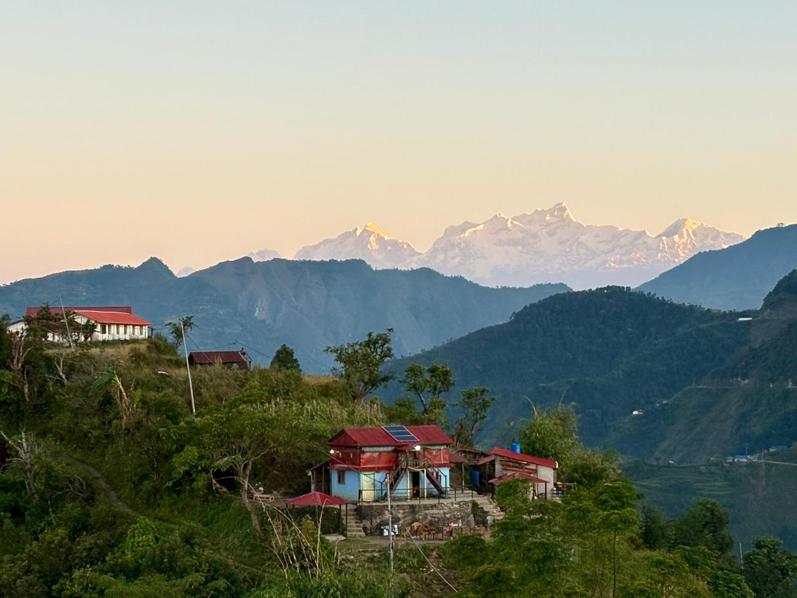 Après un dernier petit déjeuner bien agréable dans le jardin du Chitwan Gaida Lodge, nous embarquons sur la jeep avec tous nos bagages, direction les Chepang Hills. On s’arrête en chemin pour des courses de fruits et légumes sur les étalages de bord de route et Rupen, notre guide local nous rejoint. On arrive en bas du chemin de rando vers 10h30. Nous allons pouvoir randonner légers car c’est la jeep qui amène nos affaires jusqu’au village de Gadhi. La première montée raide en plein soleil est un peu dure mais on est bien récompensés par le pique-nique à l’ombre pendant lequel nous guettons l’écureuil noir géant (mais nous ne le voyons pas). La suite de la randonnée nous enchante de belles vues, de la découverte des premières maisons et installations Chepang, et de quelques oiseaux évidemment. Avant la dernière grosse montée, Annie choisit de finir par la route avec Rupen pour éviter les passages trop raides pendant que le reste du groupe finit par le petit sentier. On voit 8 Langhurs sauter de branches en branches. Et la rando se finit avec une magnifique vue sur les Annapurnas et le soleil couchant. Après nos premières « douches » froides on se régale d’un bon dal bhat. Et c’est autour d’une boisson chaude que Sylvain et Catherine nous expliquent le protocole oiseaux que l’on va réaliser demain, puis qu’on se répartit les rôles.