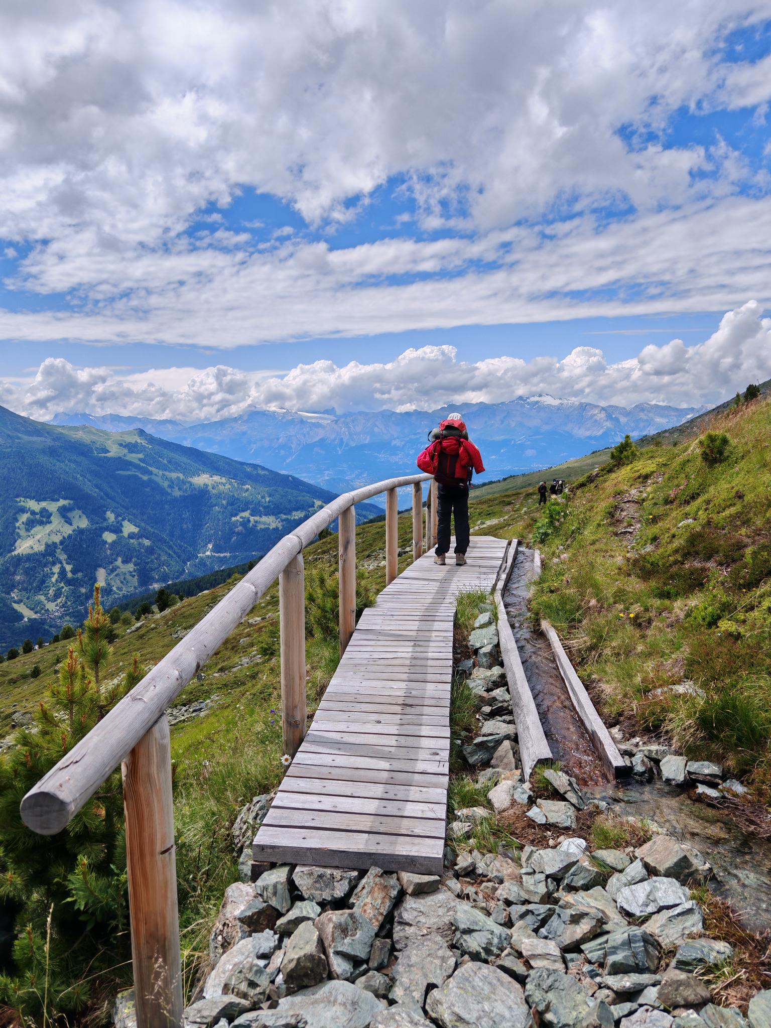 Et puis ça y est, nous nous mettons à marcher en direction du sommet de la Brinta, c’est une journée chaude avec un début présentant un fort dénivelé mais courageusement nous franchissons les 400m de montée avant de pique niquer a côté des Edelweiss.