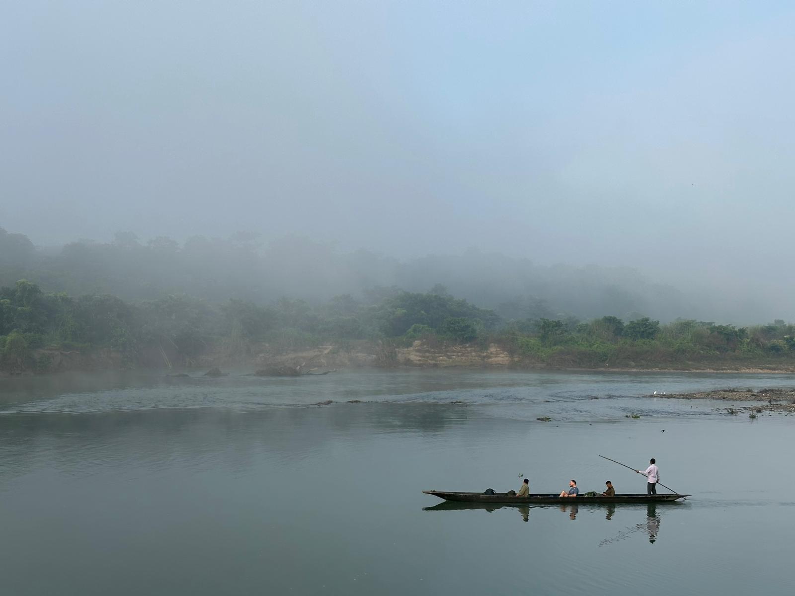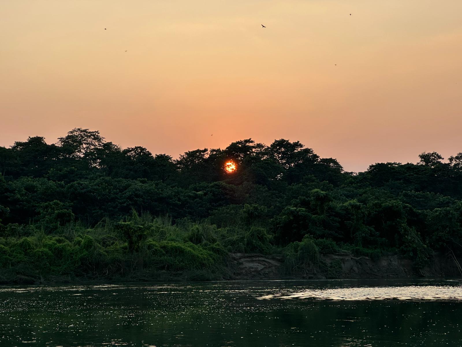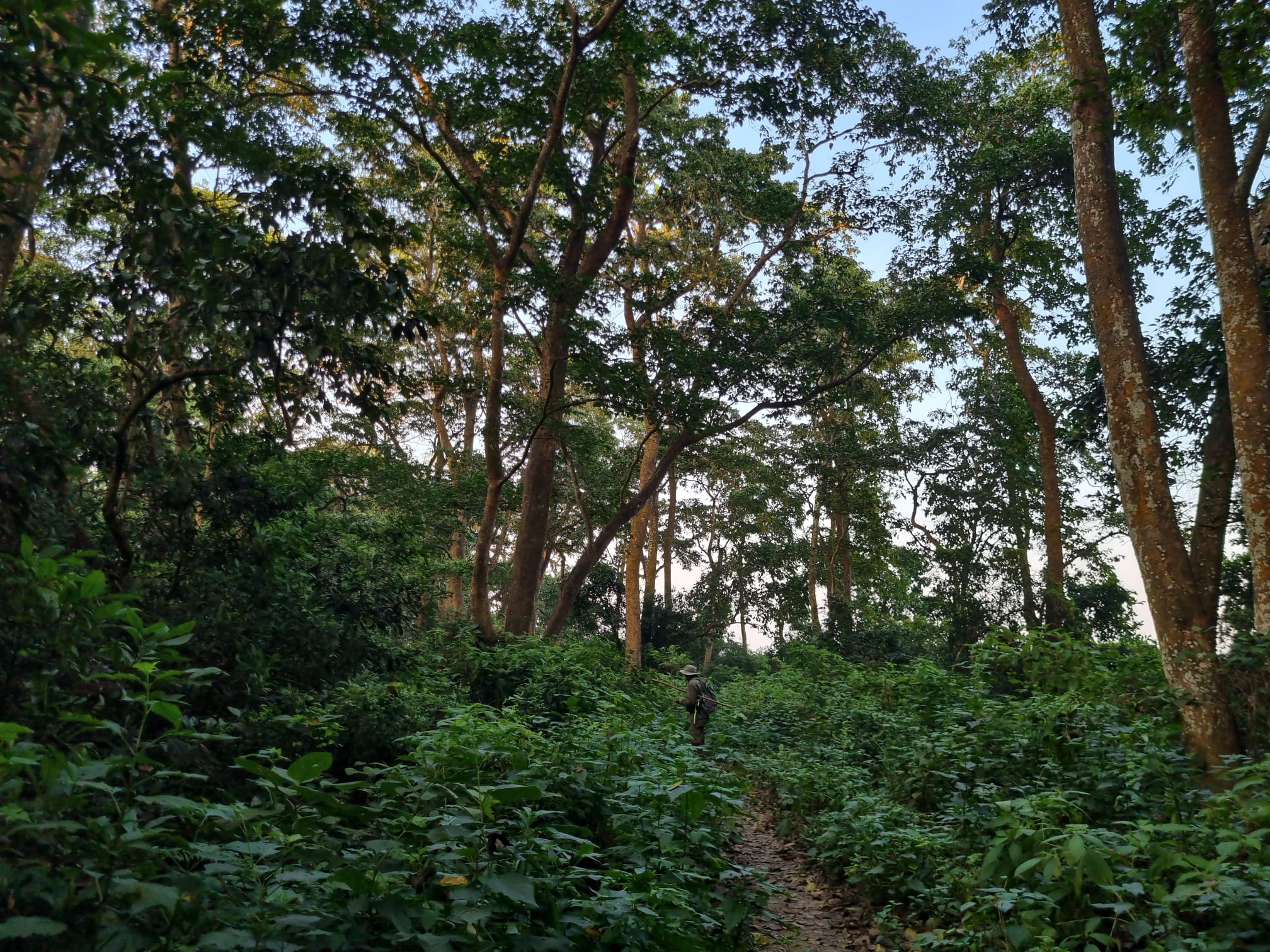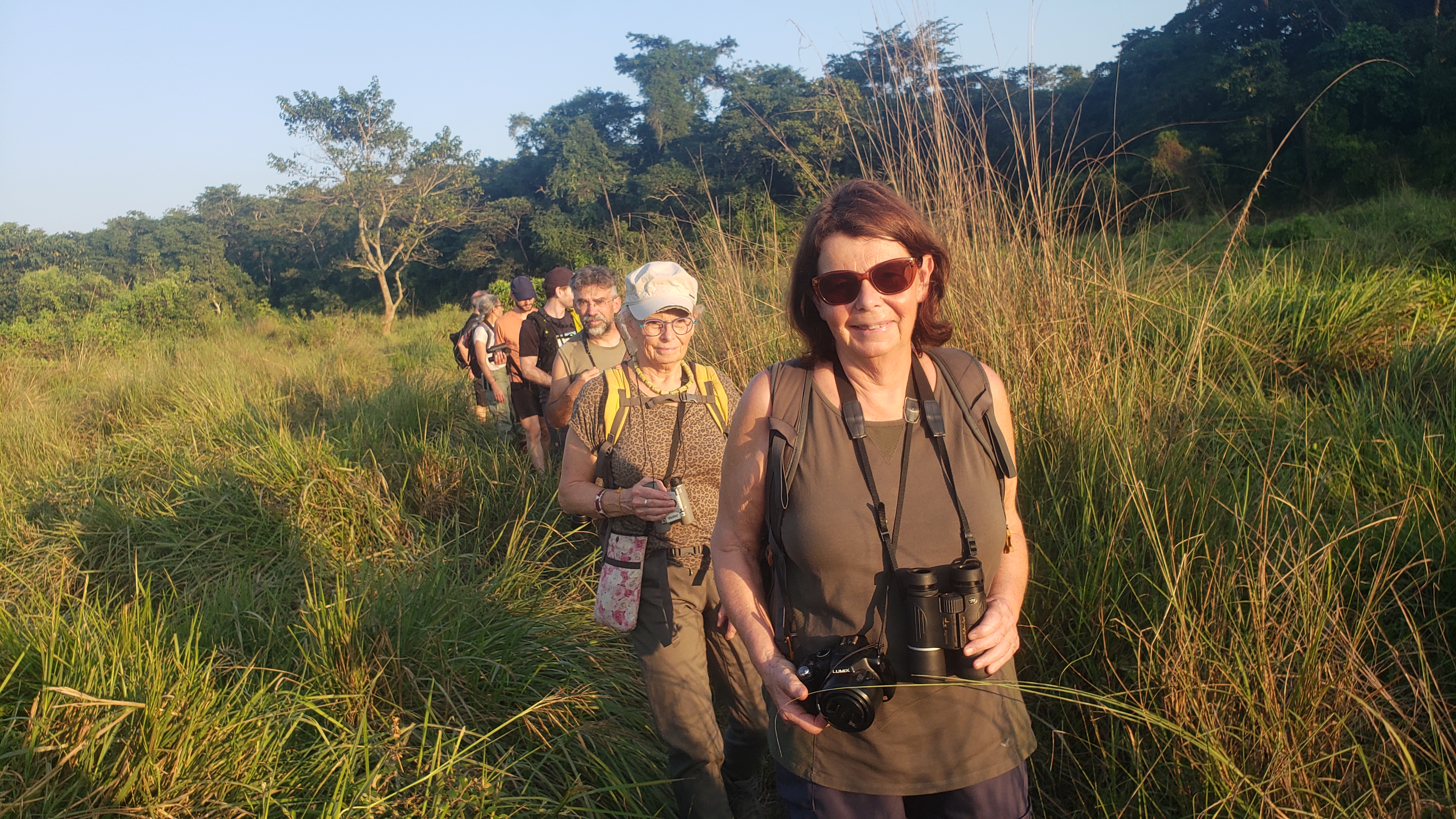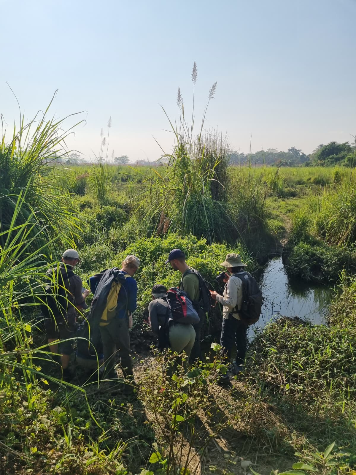 Levés dès 6h du matin pour un départ à 7h, juste après que la brume se dissipe et nous permette de rentrer dans la jungle en sécurité. Après la traversée de la rivière Rapti en pirogue, nous démarrons notre exploration encadrés par notre guide Bishnu (spécialiste des oiseaux, qui a été formé par Tika, le parrain de notre projet dans les Chepang Hills) et ses deux assistants qui assurent notre sécurité.