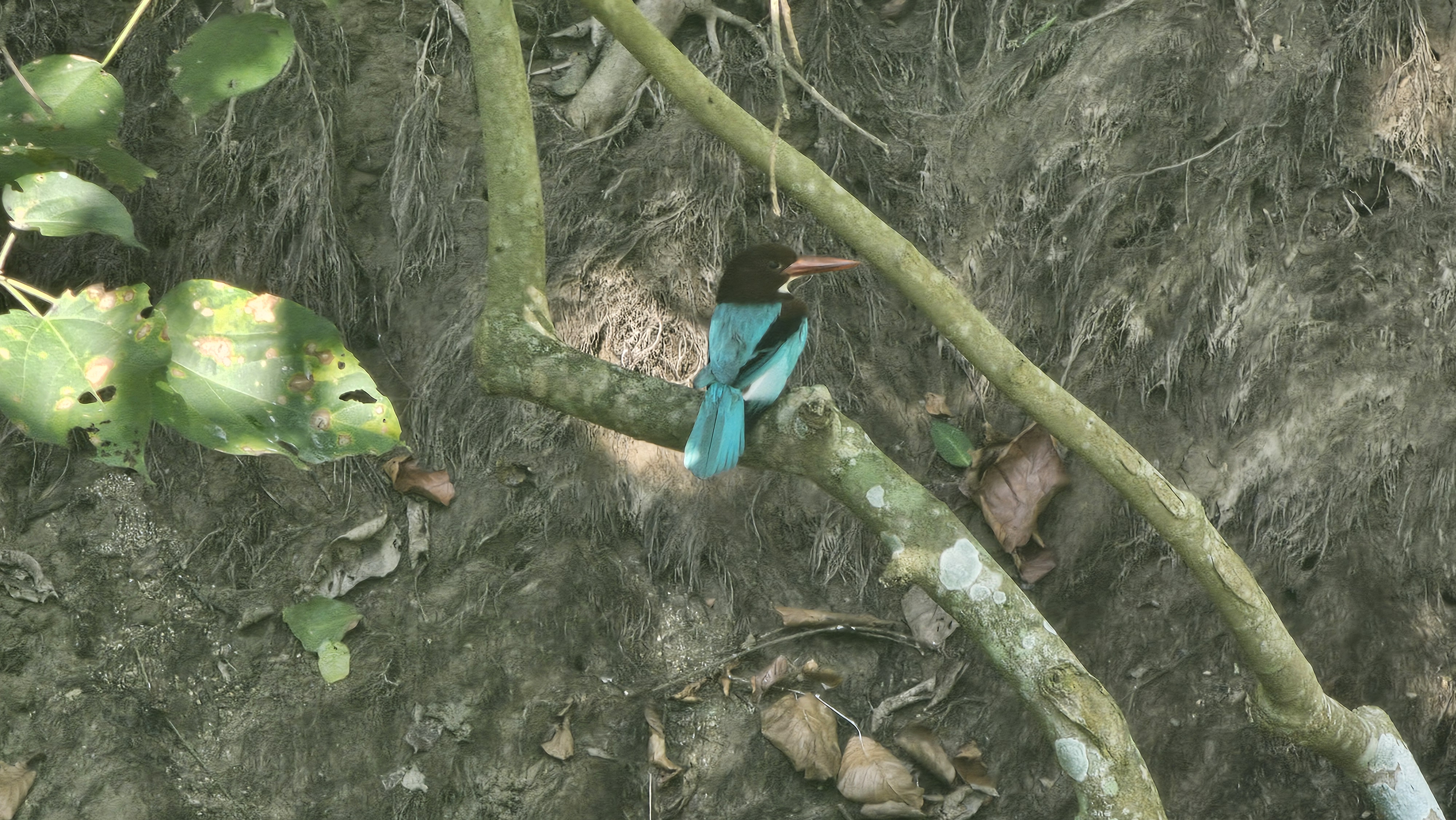 Plus tard c’est la très belle observation ornitho de la journée, une petite troupe d’Eurylaime psittacin, bariolés de vert, de jaune, de noir, avec une longue queue bleu magnifique. Une observation assez rare !