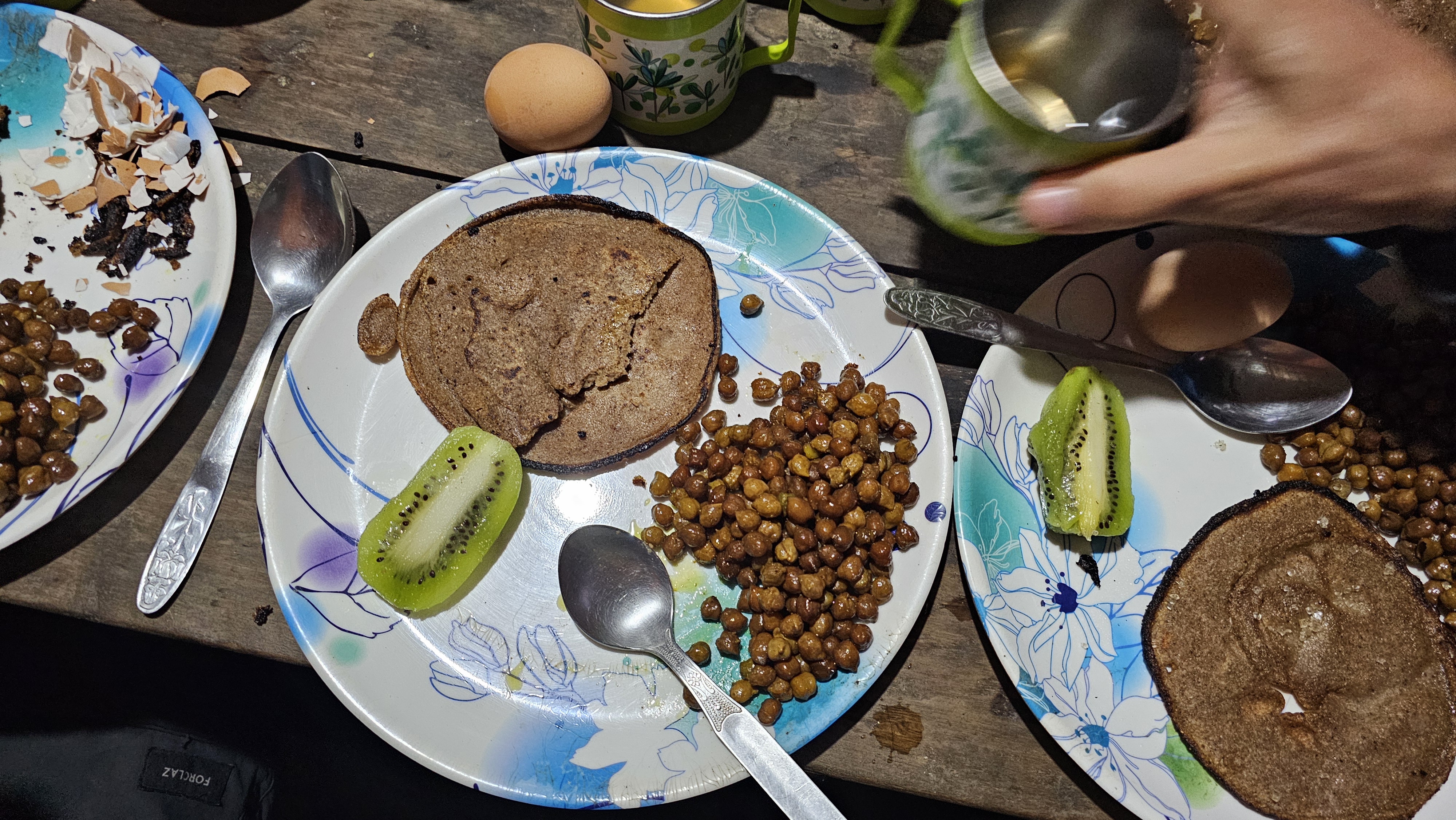 Aujourd’hui, c’est notre dernière journée dans les Chepang Hills, snif. Nous commençons la journée par le petit-déjeuner spécial du Gadi Hill Cottage où nous avons dormi : pancakes, oeuf dur et patates super bien cuisinées.