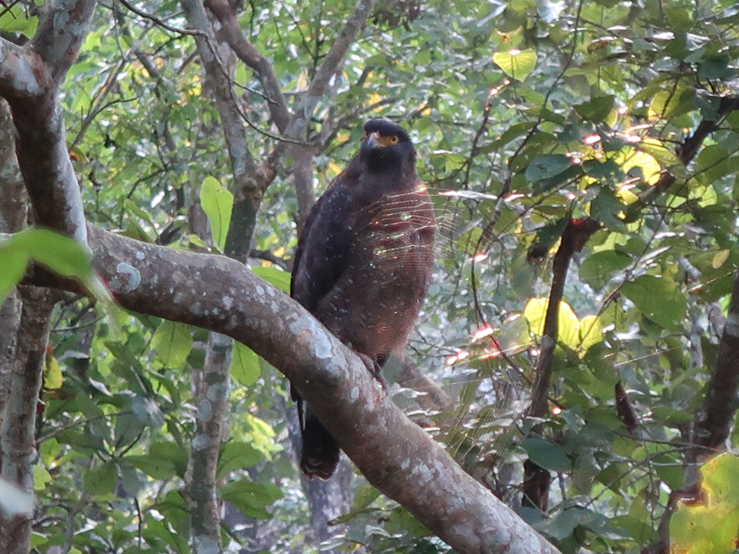 Une des plus belles observations du matin, c’est le Grand Duc Brun, qui nous regarde droit dans les yeux depuis sa branche, et qui se fait ensuite houspiller par une Temia vagabonde jusqu’à ce qu’il fuit.