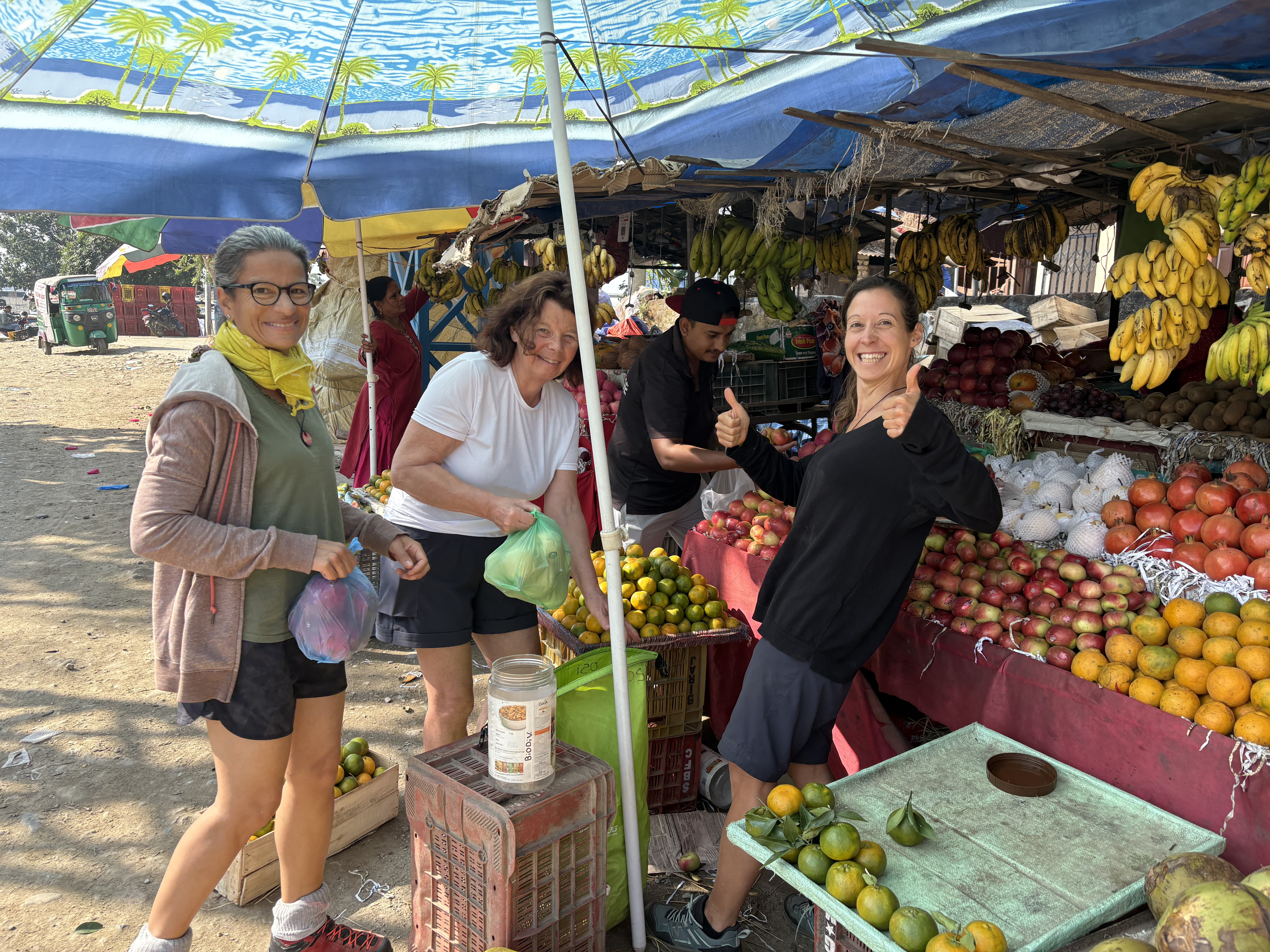 Rupen nous emmène ensuite nous balader en zigzagant entre les maisons pour le plaisir de découvrir de plus près les activités de la vie locale : après les habituels grands sourires et namaste, on les voit donc trier les graines de millet , nous montrer ici et là les fruits et légumes qu’ils ont autour de leur maison. On goûte les goyaves (pas encore mures), on découvre qu’il y a 2 types de « scous » (appelés chouchous à la Réunion ou chayottes aux Antilles) ...