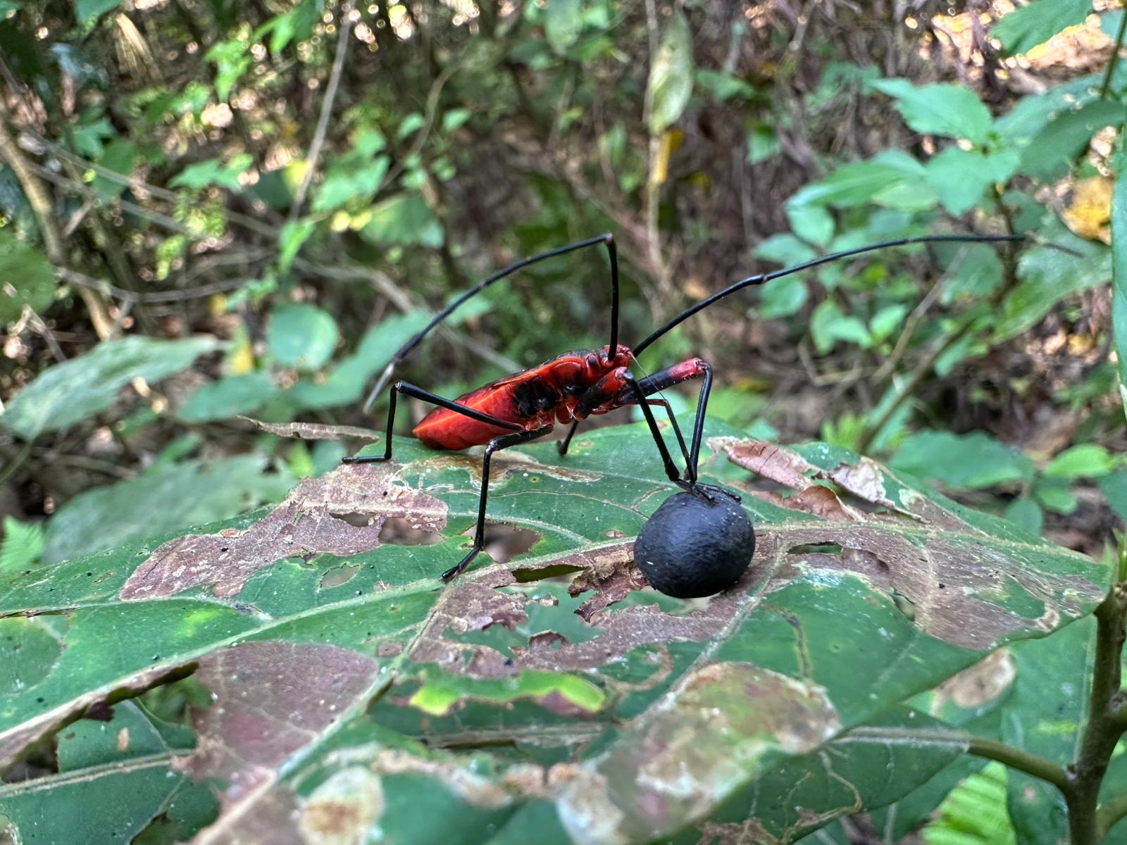 Et bien nous en a pris ! Alors que nous réalisons un protocole d’analyse de l’habitat forestier dans une forêt secondaire dominée par les châtaigniers Castanopsis indica, nous repérons une Liane étonnante, portant des gousses géantes d’au moins un mètre, suspendu tout en haut dans la canopée, puis les graines de cette plante, de la taille et la forme d’un palet de hockey sur glace. Une fois germé, les deux feuilles rudimentaires (« cotyledons »)s’écartent et cela ressemble à un macaron ! Une petite recherche nous mène sur la piste du genre Entada, qui comprend une espèce bien nommée le haricotier géant. Apparemment ces énormes graines sont comestibles une fois cuisinés, et sont même ingérés d’un coup par les calaos !